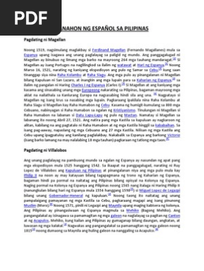 1521 - Ekspidisyon ni Loaisa 1526 - Ekspidisyon ni Cabot 1527 - Ekspidisyon ni ni Saavedra 1542 - Ekspidisyon ni Villalobos ibinigay ang pangalang Pilipinas 1565 - Ekspidisyon ni Lopes de Legaspi Hindi tinanggap sa Cebu 1571 - Ekspidisyon ni. Pagiging kolonya ng Espanya Pagdating ni Magellan sa Pilipinas. Lapu-lapuay ang tuwirang pananakop ng isang bansa sa i ba pang bansa upang makuha angyaman at makontrol ang pamamahala ritoa.