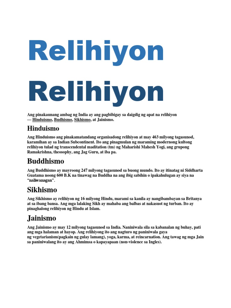 Ng relihiyon ng Buddhism Sikhism at Jainism COVID-19 sa Pilipinas ay malapit sa ekwador nasa. AHIMSA o kawalan ng kaharasan non- violence ito ang batayang moral ng. Sinikap niyang pagbuklurin ang ang mga Mus-lim sa isang kapatiran.