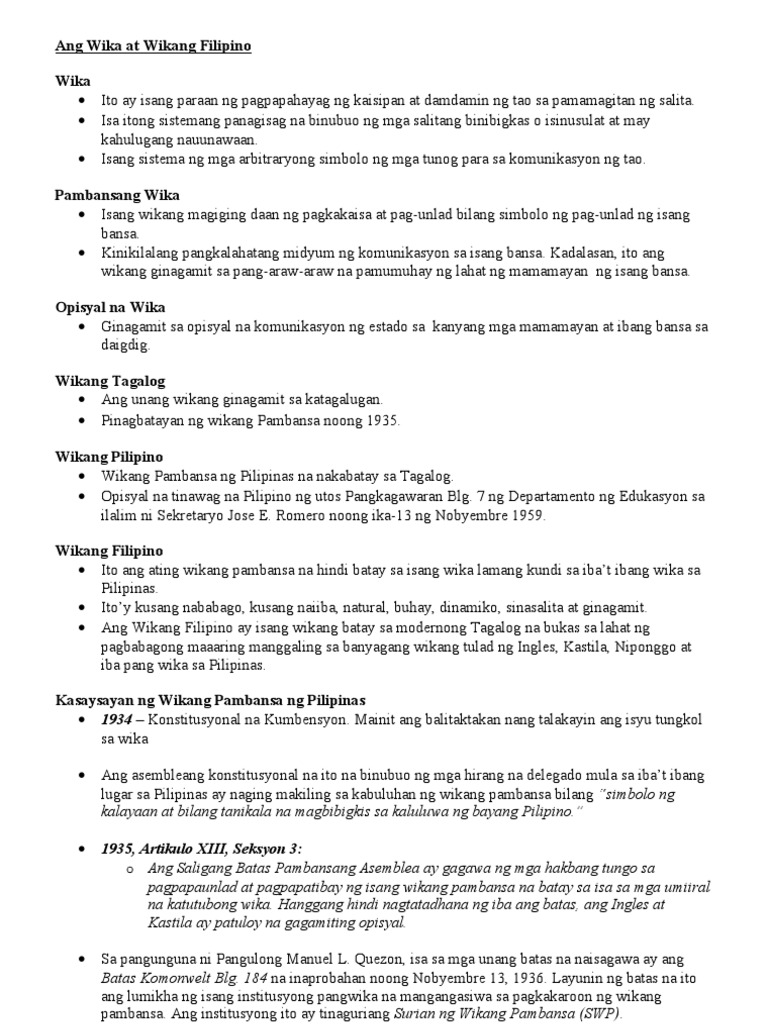 Mga Batas At Kautusan Na May Kinalaman Sa Wikang Pambansa Docsity