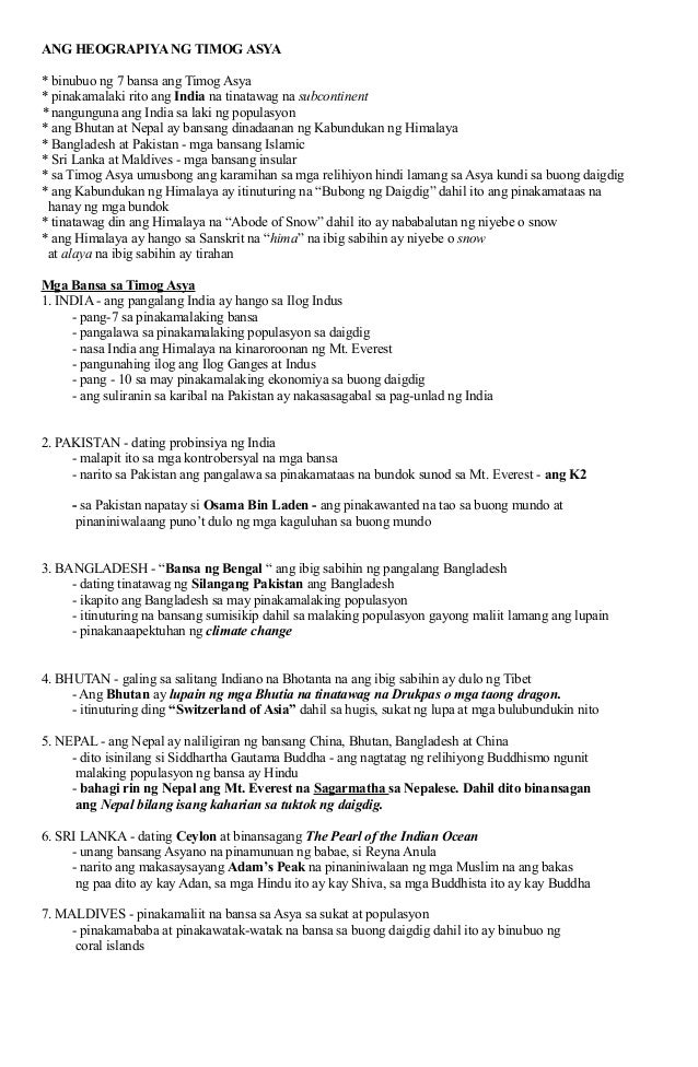 Rehiyon Ng Asyakatangiang Pisikal Ng Asyasukat Anyokinaroroonanhugis1 Timog Asya2 Timog Silangang Brainly Ph